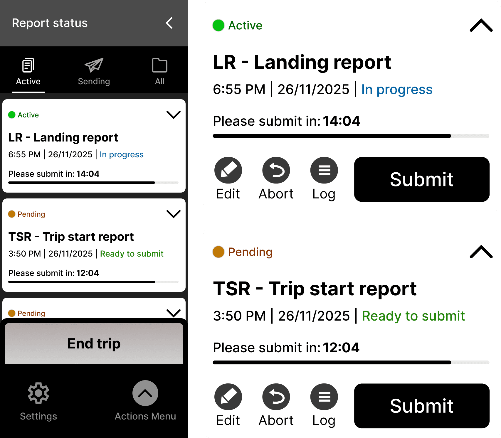 Users found it difficult to understand which report is active and what stage of completion they are in.