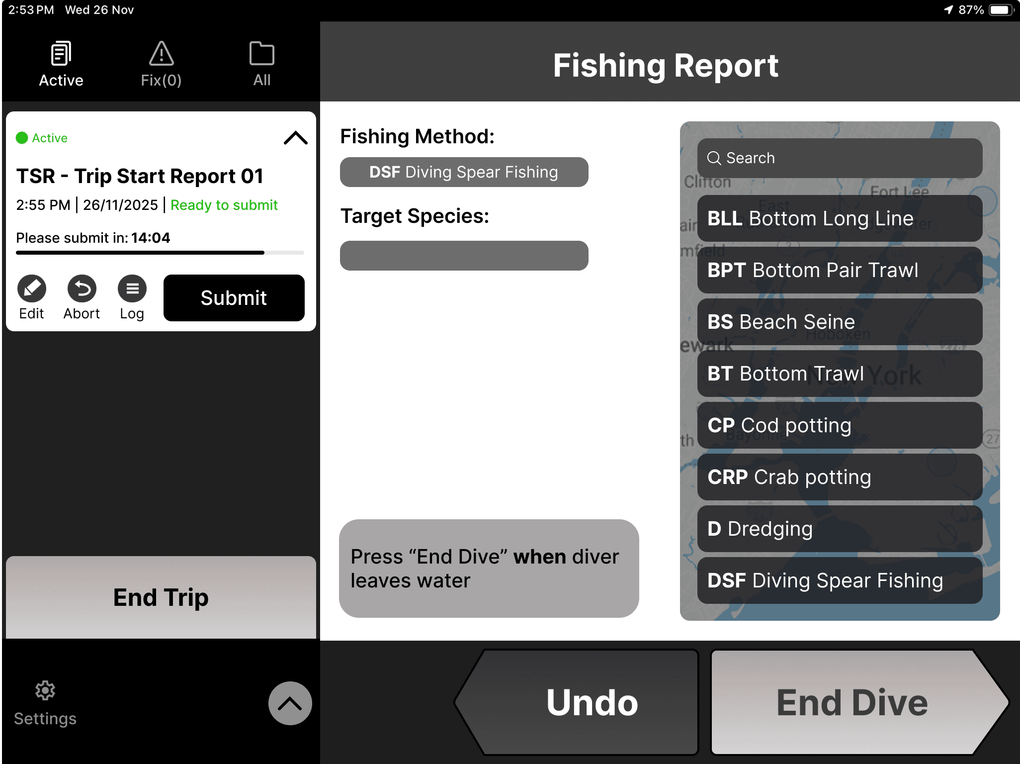 Deckhand is an electronic logbook that allows fishermen to report catch, trip activities, and location data to the NZ government.